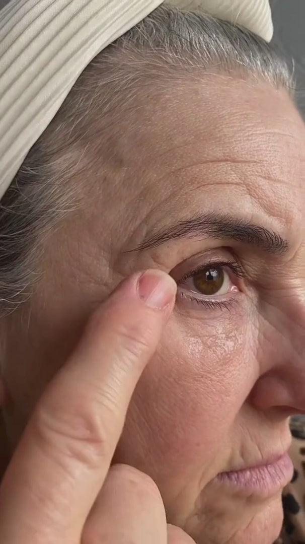 - Verteilen Sie das Gel mit aufwärts gerichteten Bewegungen dünn auf den Bereich unter den Augen, auf die Krähenfüße, die Zornesfalten zwischen den Augenbrauen („11“) sowie unter und über den Augenbrauenbogen (aber nicht auf dem beweglichen Augenlid).